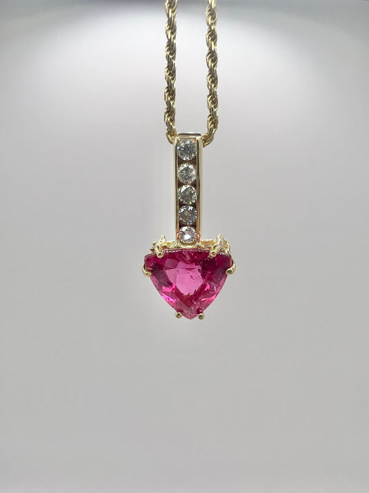 Y14K 18" Chain w/Y14K .25CTW Diamond & Tourmaline Pendant