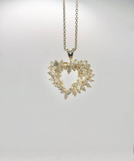 Y14K 18" Chain w/Y14K 1CTW Diamond Heart Pendant