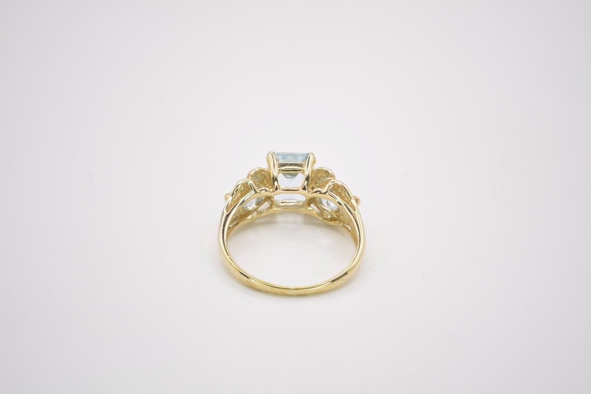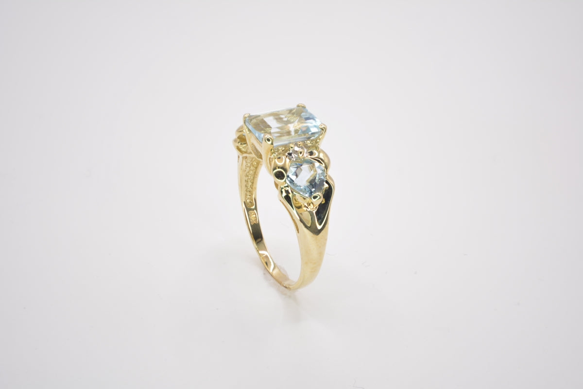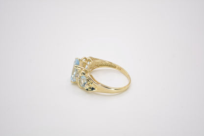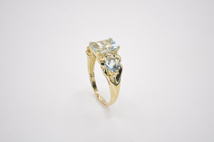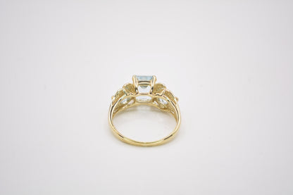 Aquamarine and Diamonds - 1 small Diamond on each side of the center stone