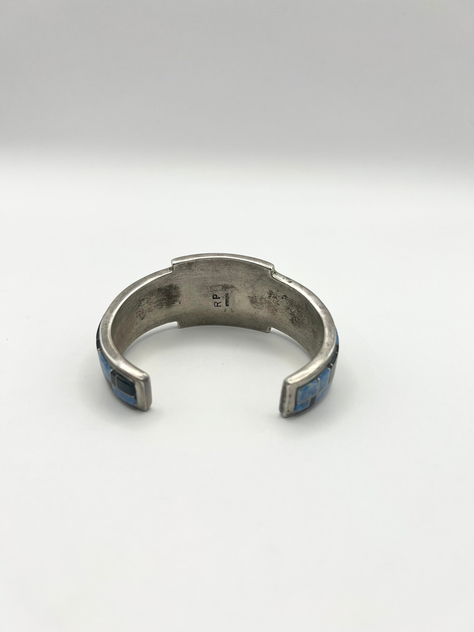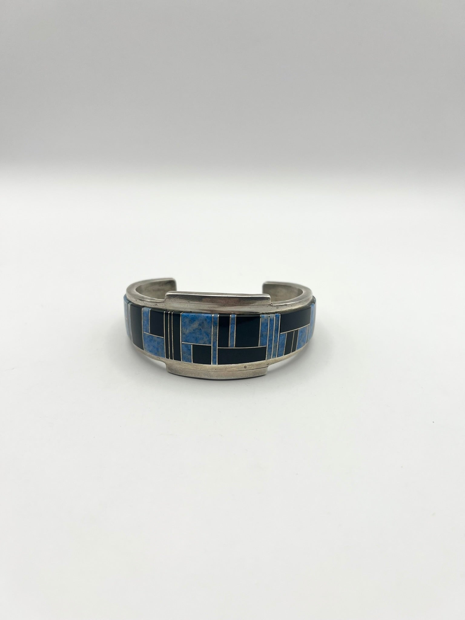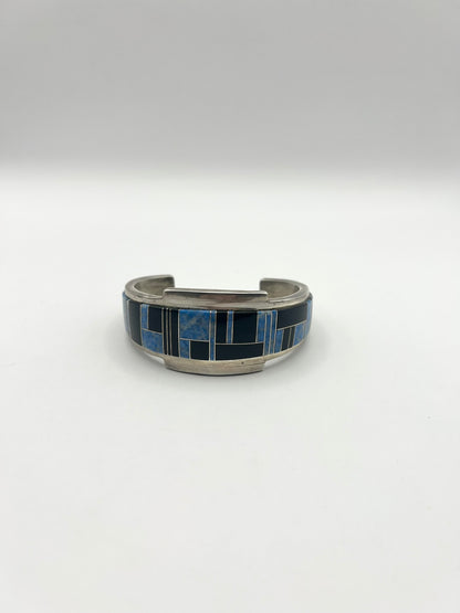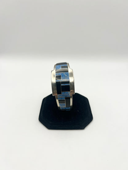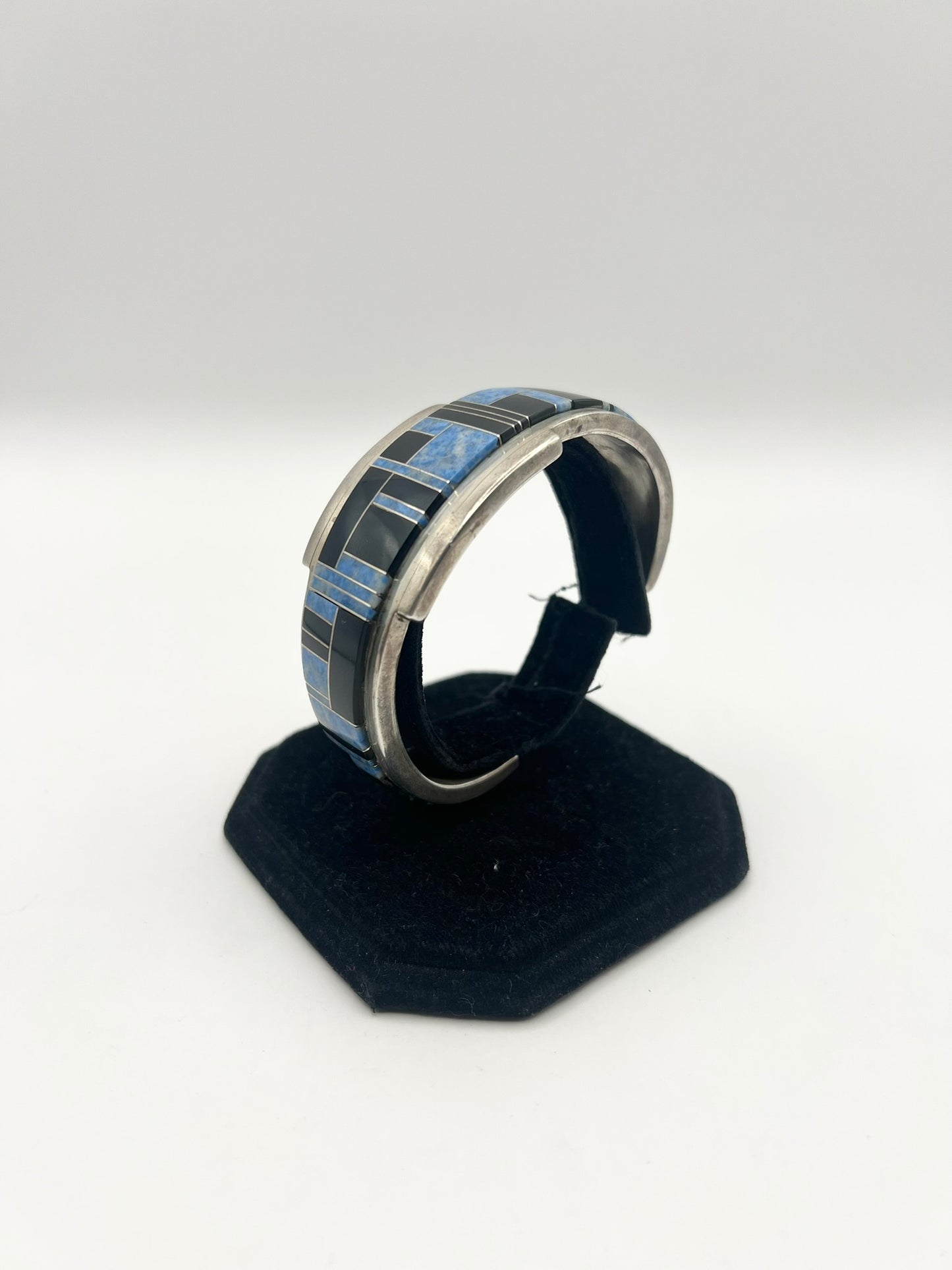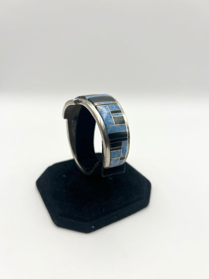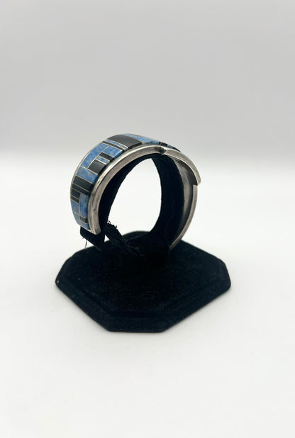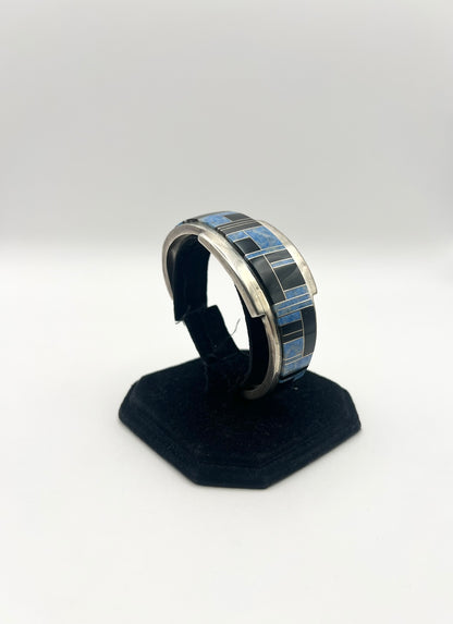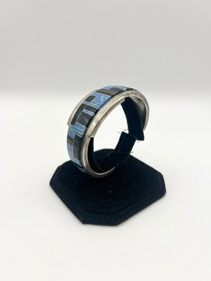 Native American Sterling Silver Blue & Black Inlayed Bracelet