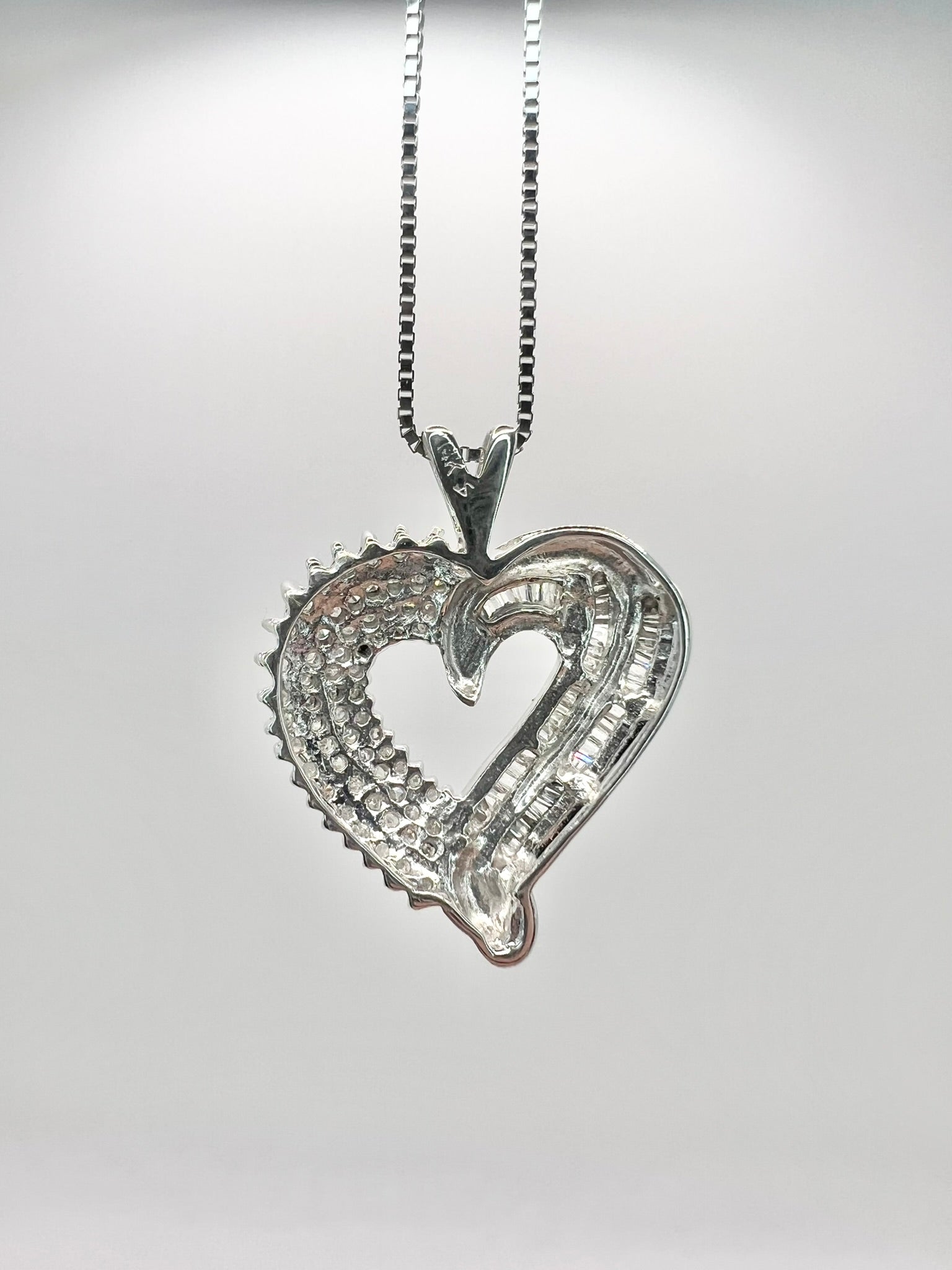 White 14K 1CTW Diamond Heart Pendant w/Baguettes
