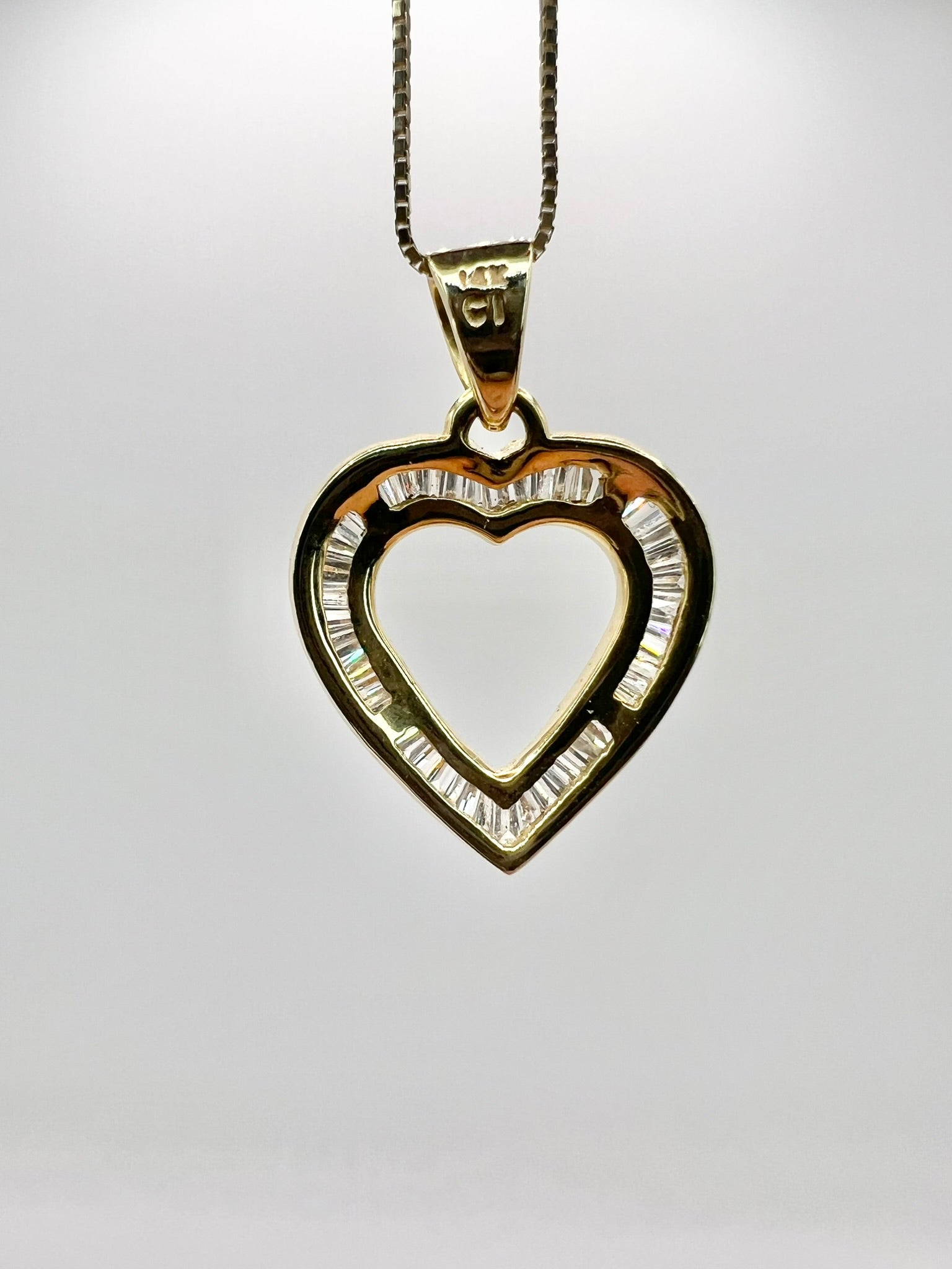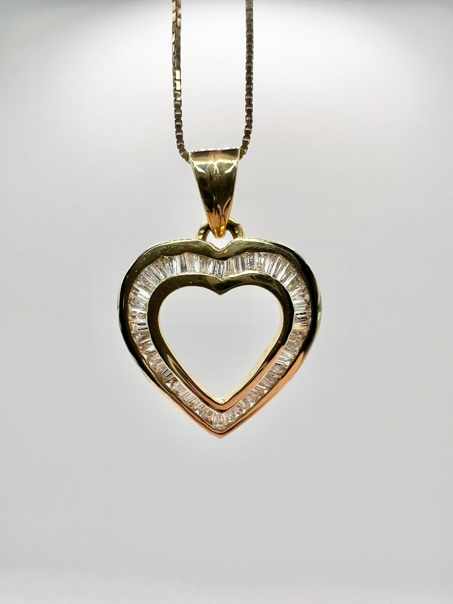 Yellow 14K .50CTW Diamond Baguette Heart Pendant