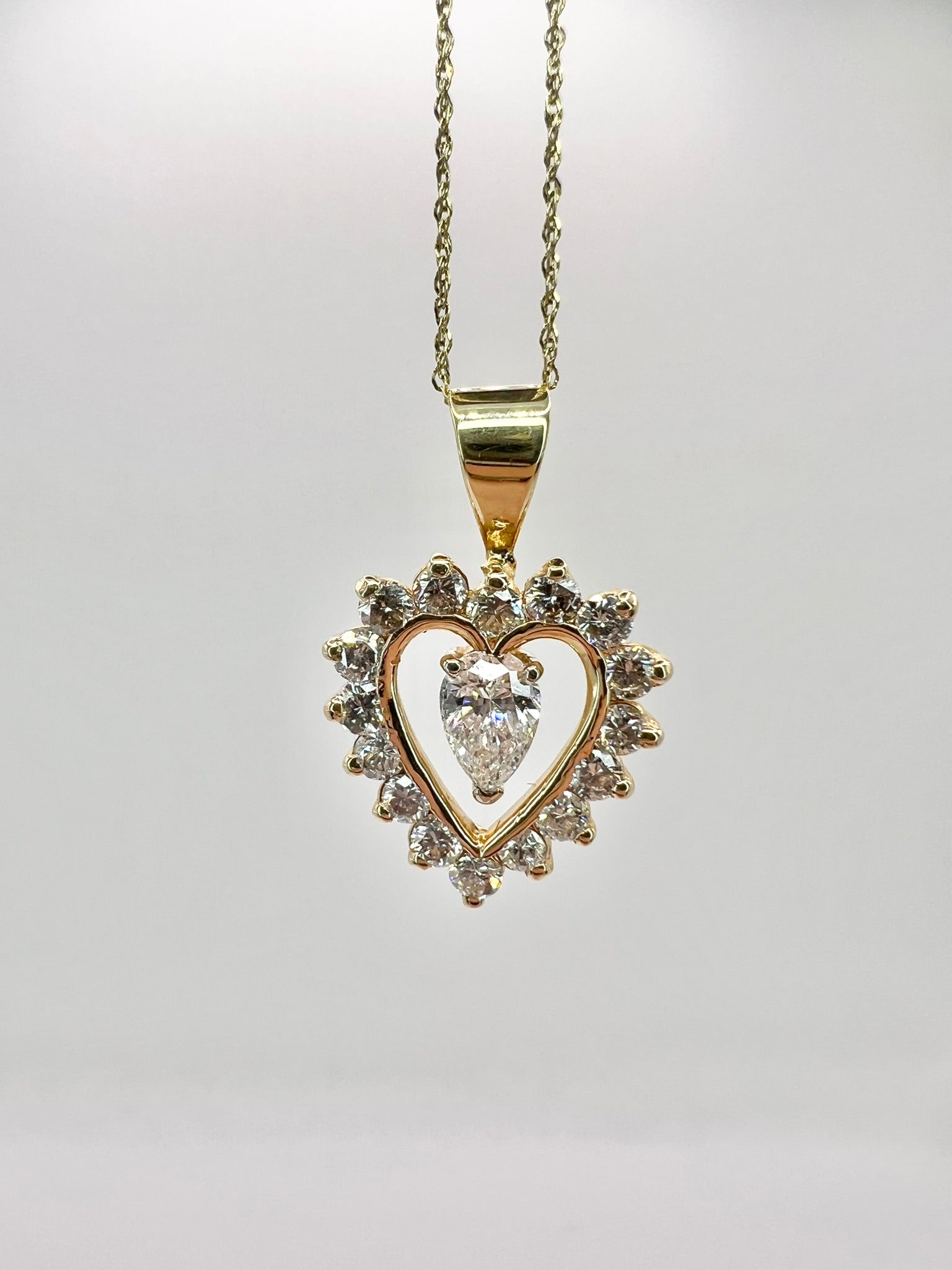 Yellow 14K .60CT SI2 1CTW Diamond Heart Pendant