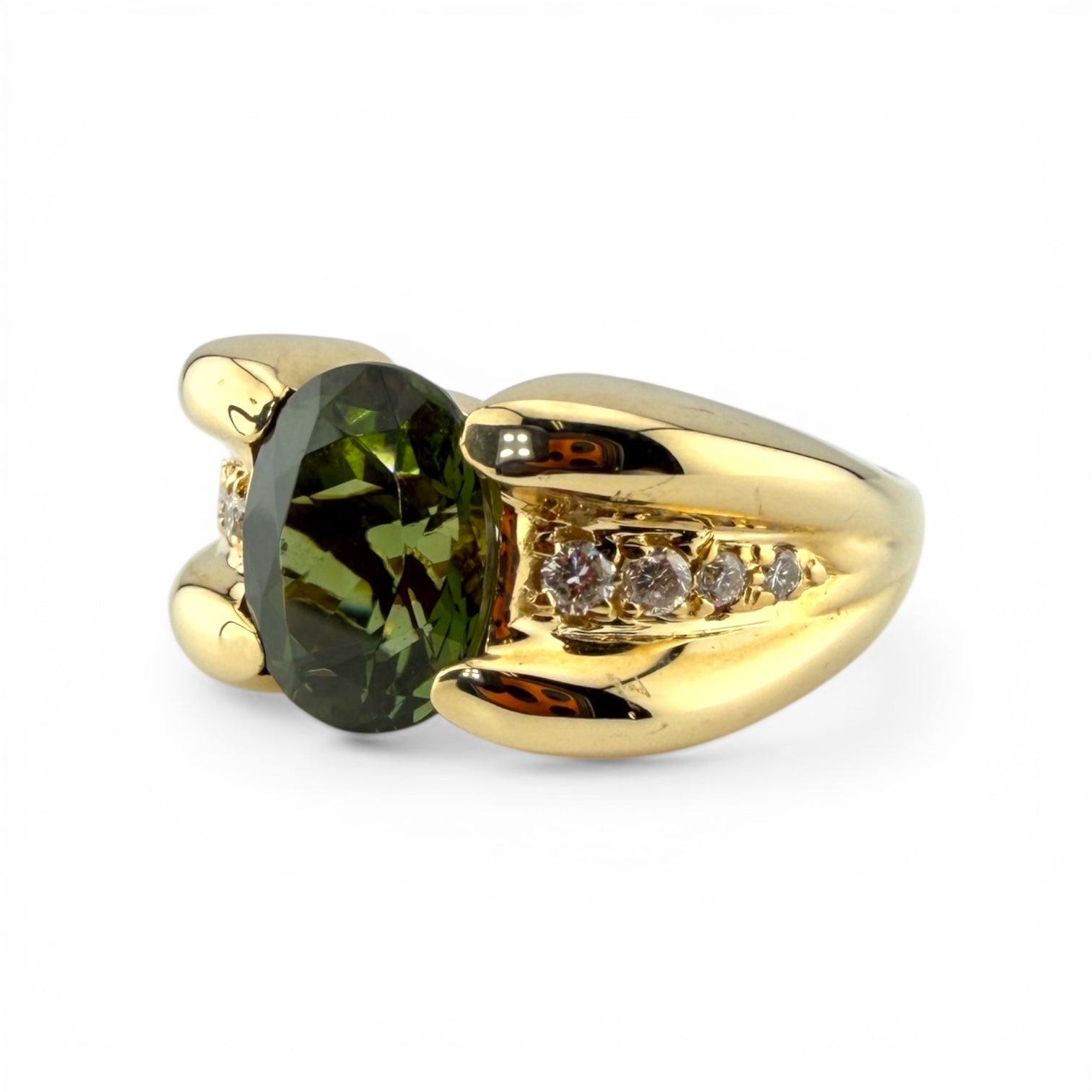Yellow 14K Green Tourmaline & .10CTW Diamond Ring
