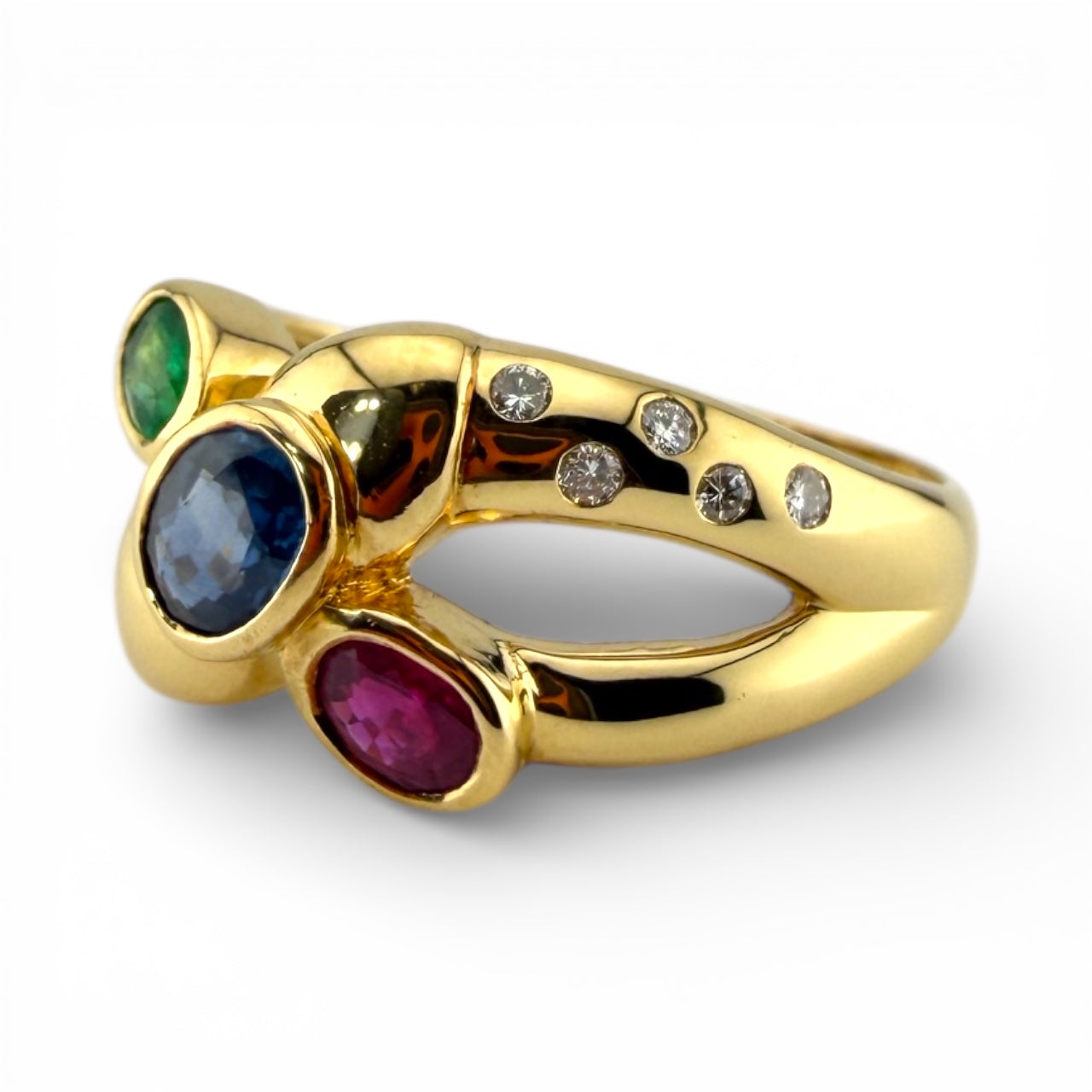 Yellow 18K .25CTW Diamond, Emerald, Ruby, & Sapphire Ring